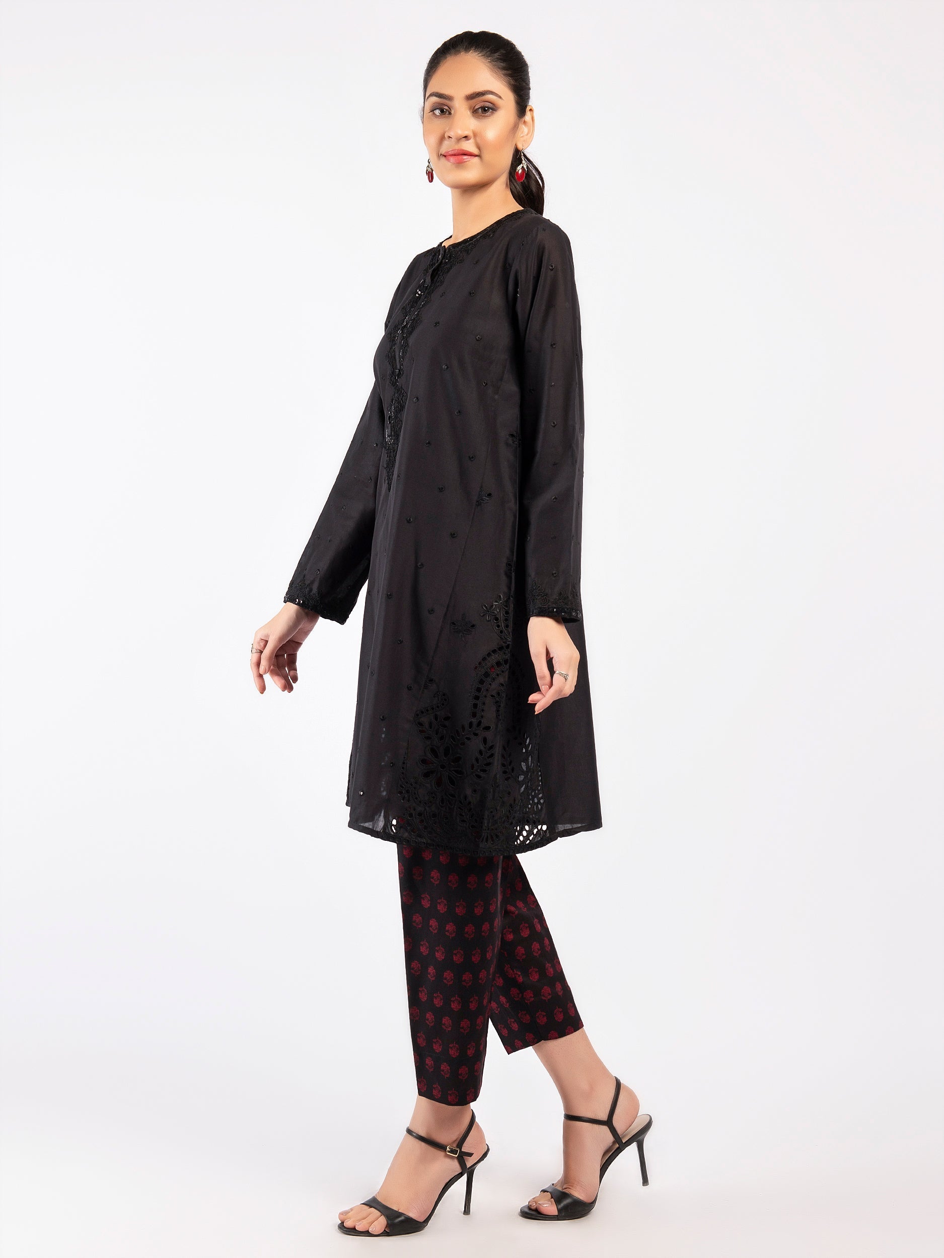 - Thread, sequin and tilla work on the front and full sleeves