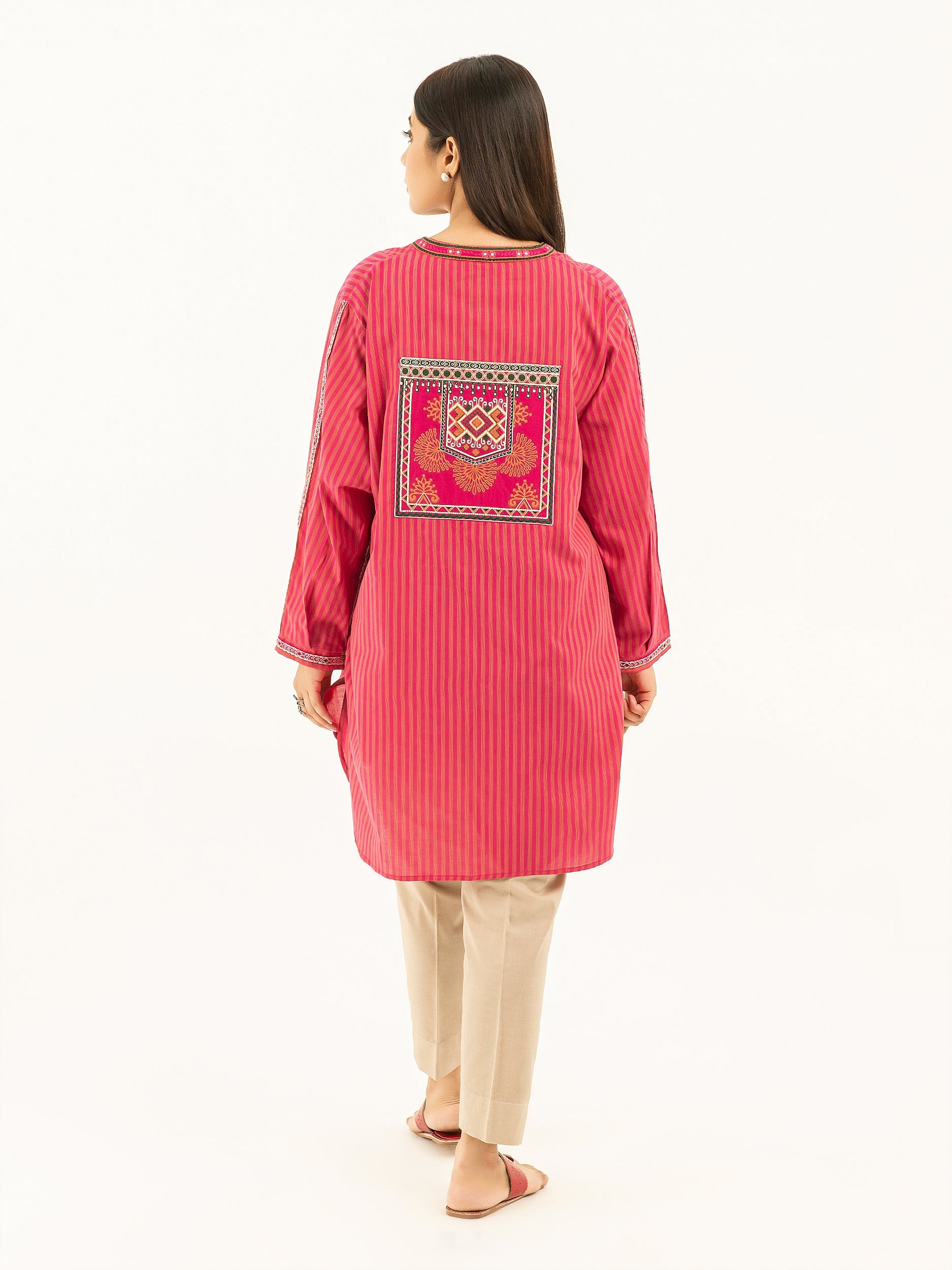- Embroidered neckline, placket, full sleeves and back