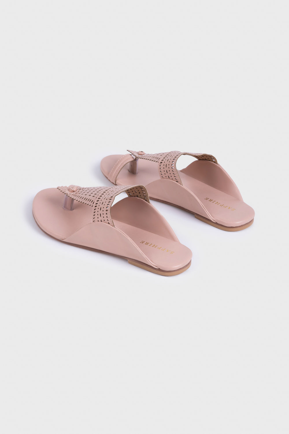 Embrace the wild spirit of summer with these vibrant PU kolapuri sandals in light pink with a laser cutting design.