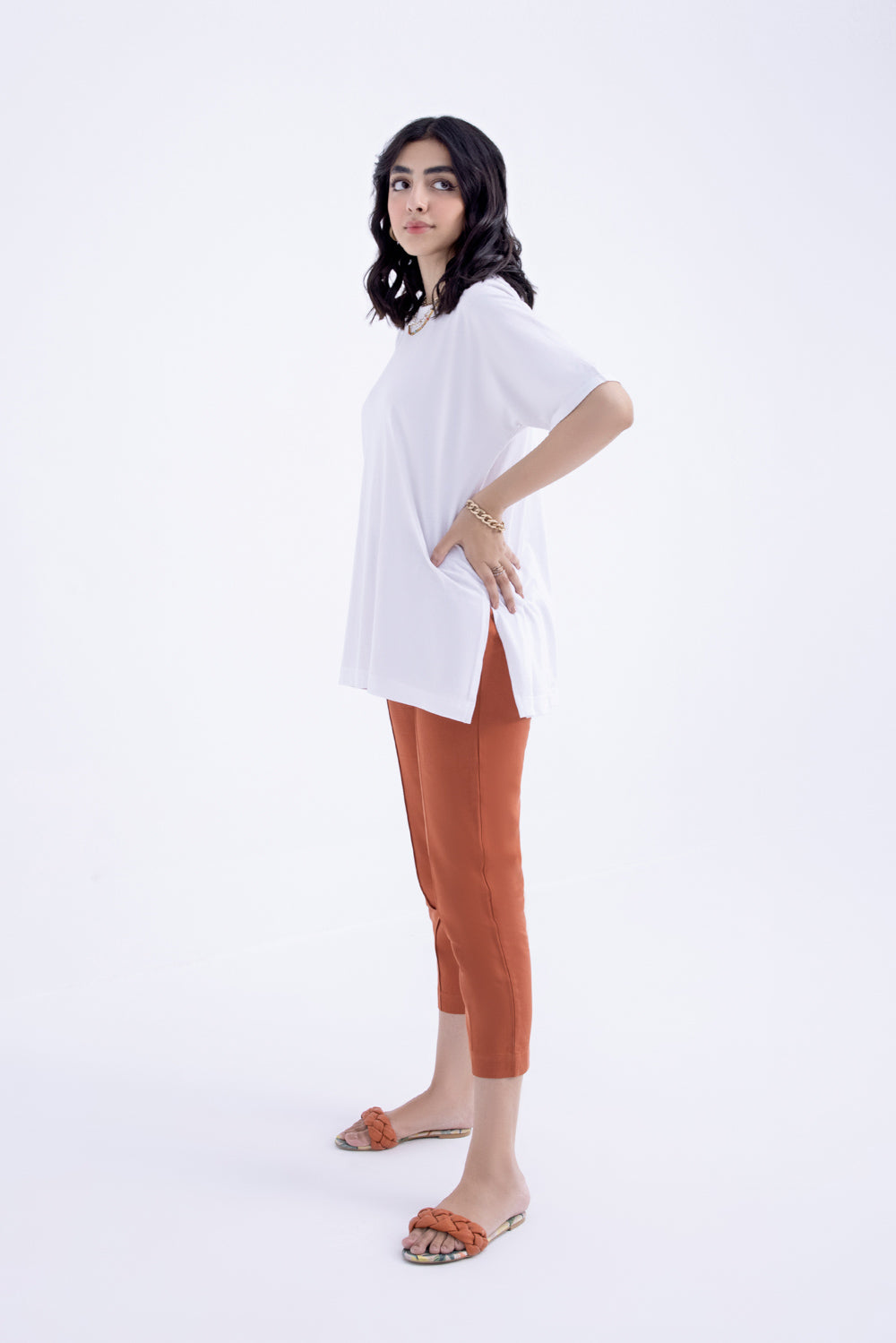 Oversized cotton t shirt with round neck. Short kimono sleeves and side slits
