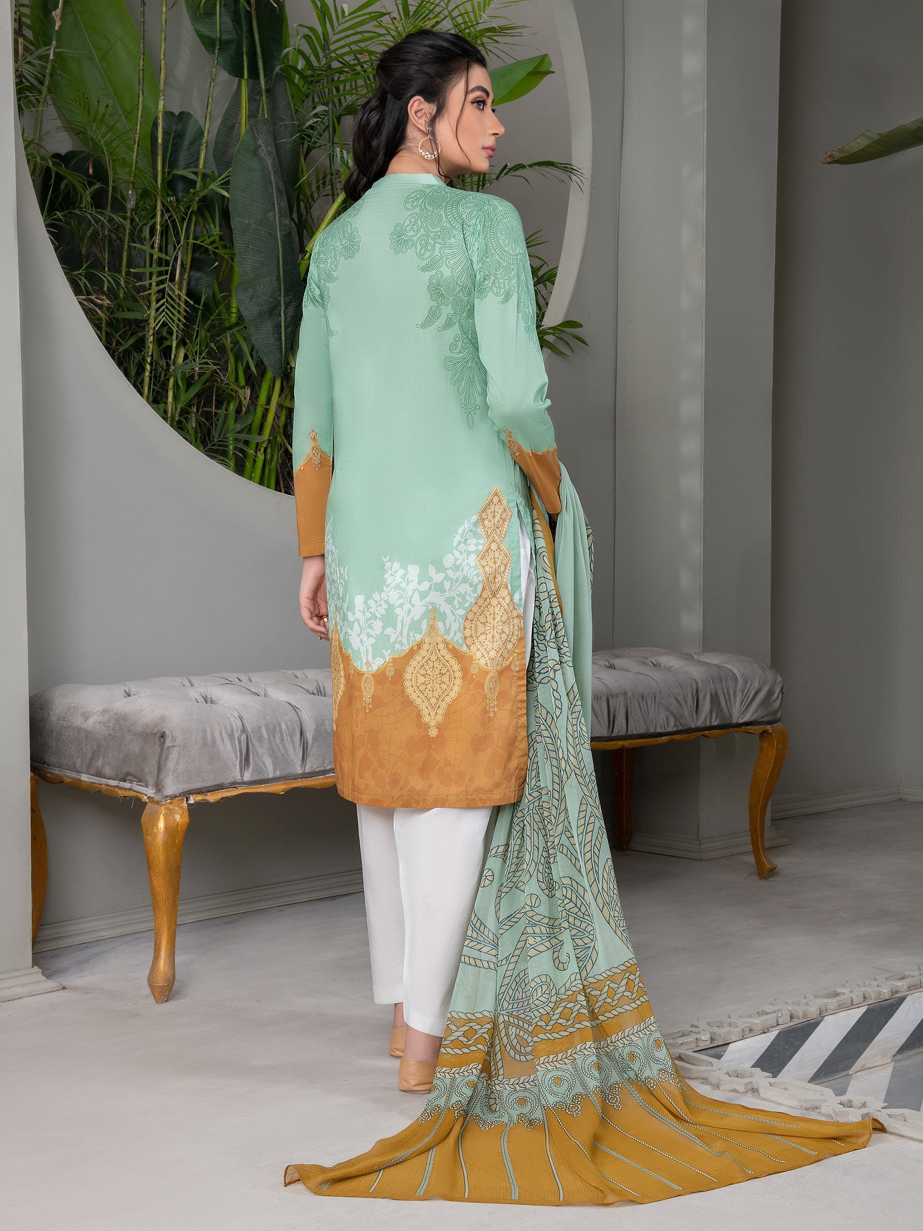 - Light shade printed pattern on chiffon dupatta