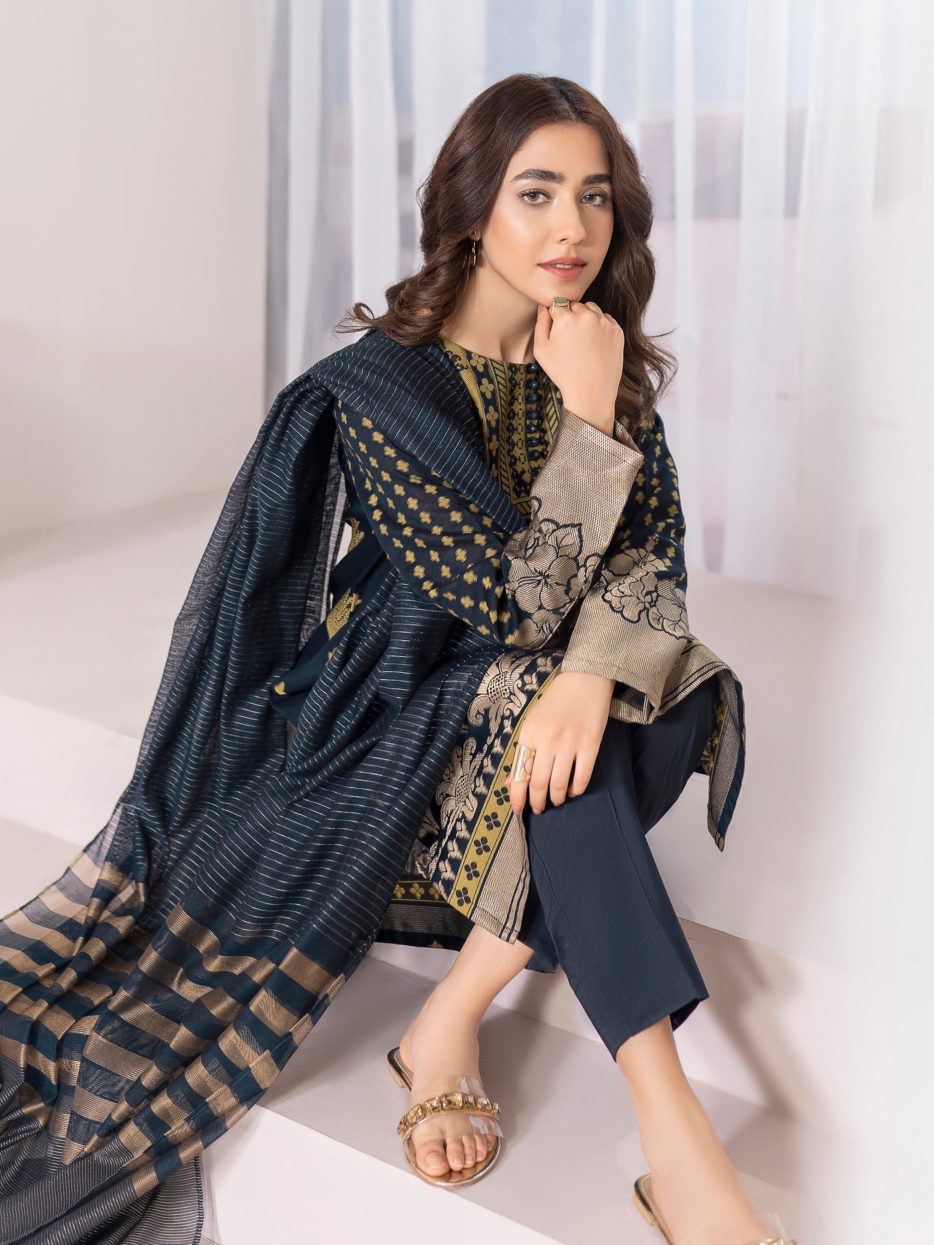 - Unstitched 2 Piece Printed Jacquard Suit (Shirt+Dupatta)