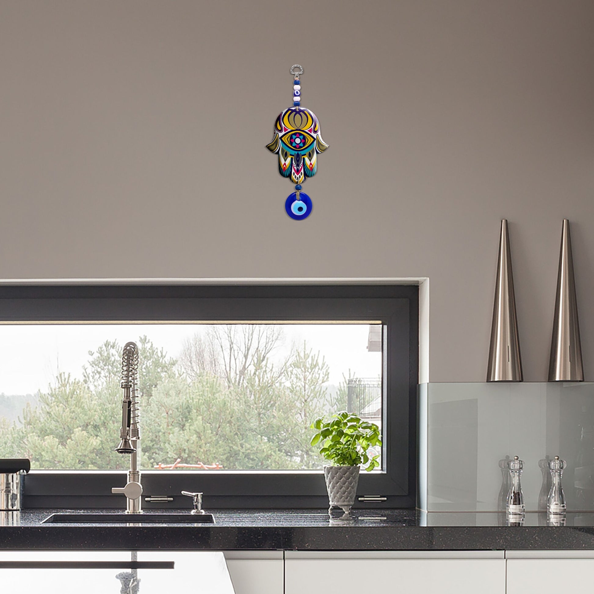 آؤ ان آرائشی دیوار کے پھانسی کے ساتھ ہمسا وال آرٹ کا ایک مجموعہ بنائیں۔