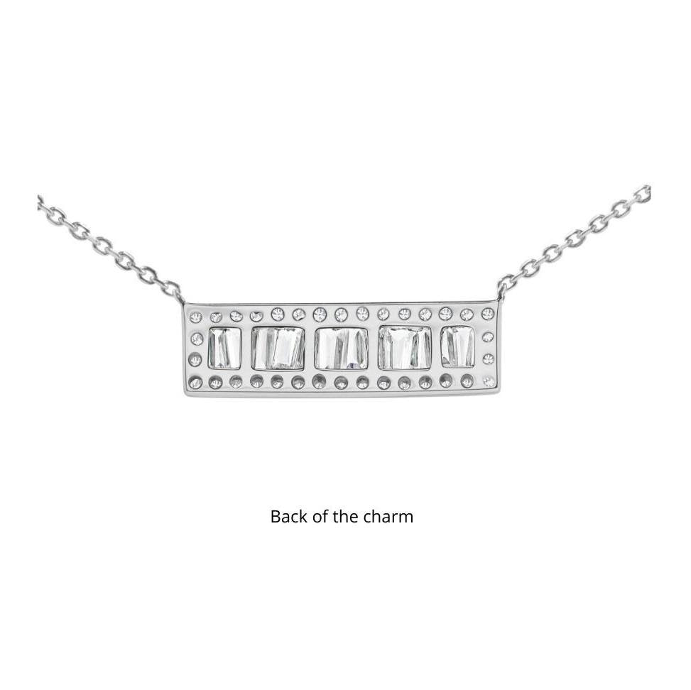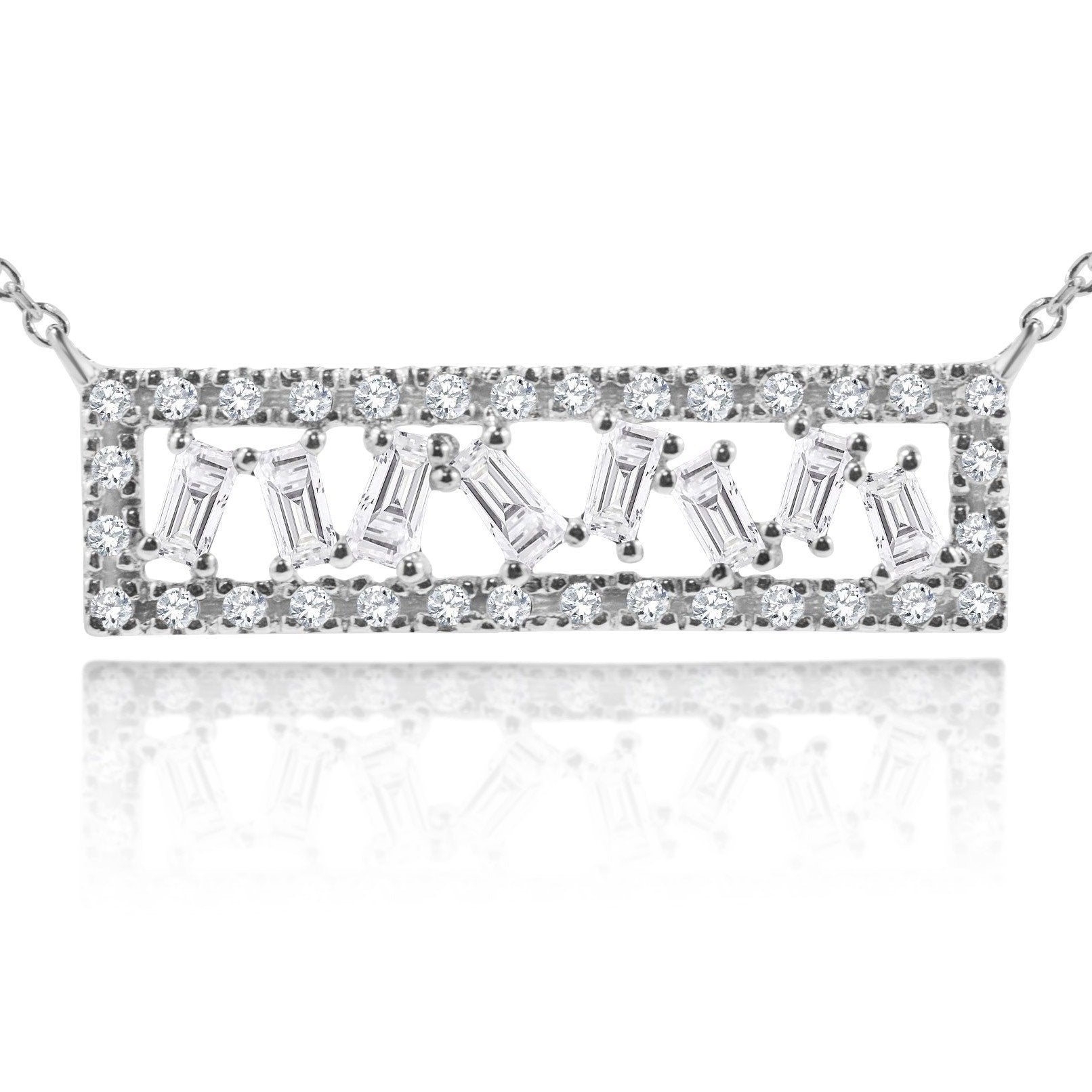 ہموار ہیروں کے ایک فریم میں بیگیٹ ہیرے کا ہار سیٹ کیا گیا ہے۔