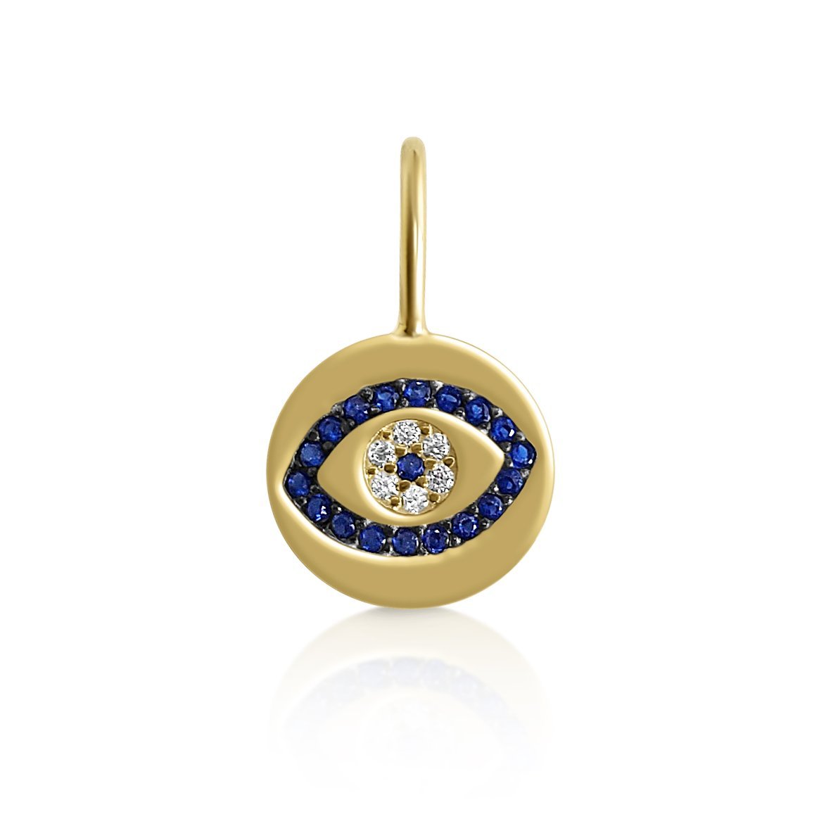 چمکتے ہوئے لکی بلیو اسٹونس کے ساتھ ، اس سونے کی توجہ کو کسی بھی زنجیر میں شامل کیا جاسکتا ہے۔