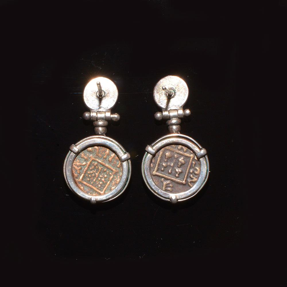چاندی کی بالیاں میں تھریسیئن کانسی کے سکے (CA. 400 - 380 BCE) کا ایک جوڑا