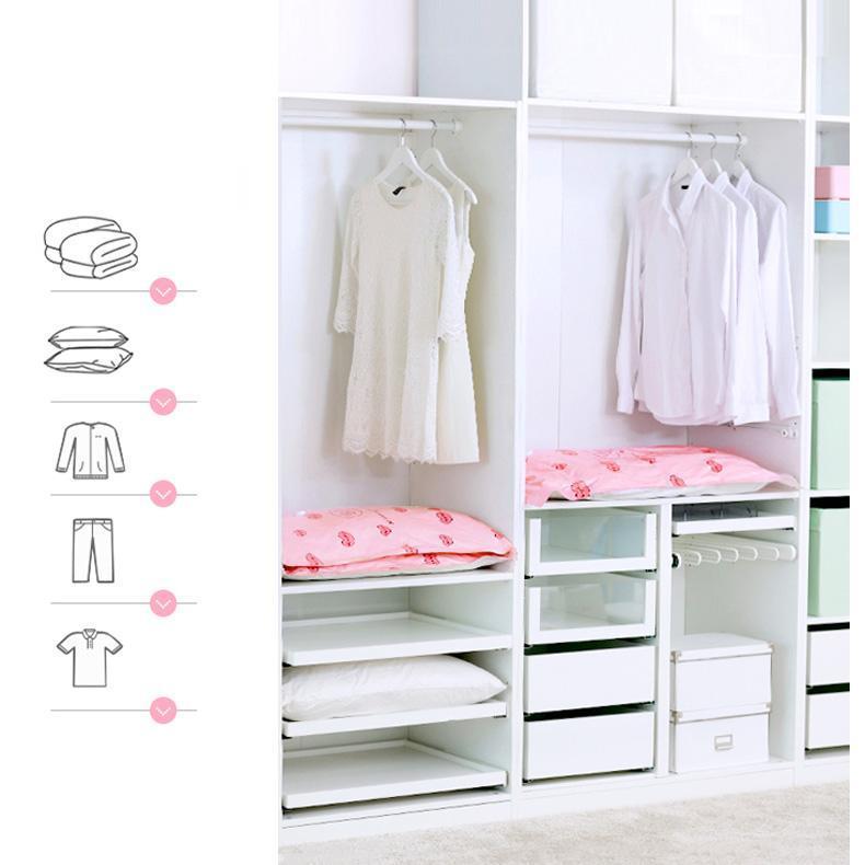 یہ ویکیوم بیگ گھر ، چھاترالی کمرے ، دفتر یا کلاس روم میں جگہ بچانے کے لئے استعمال ہوسکتے ہیں۔ مزید لباس ، شیٹ سیٹ ، ڈوئٹس اور تکیوں کے لئے جگہ بنانے کے لئے اپنے بیڈروم کی الماری کو منظم کرنے کے لئے بیگ کا استعمال کریں۔ زپ ، واٹر پروف ، دوبارہ قابل استعمال اور انتہائی سخت سے لیس ویکیوم اسٹوریج بیگ۔