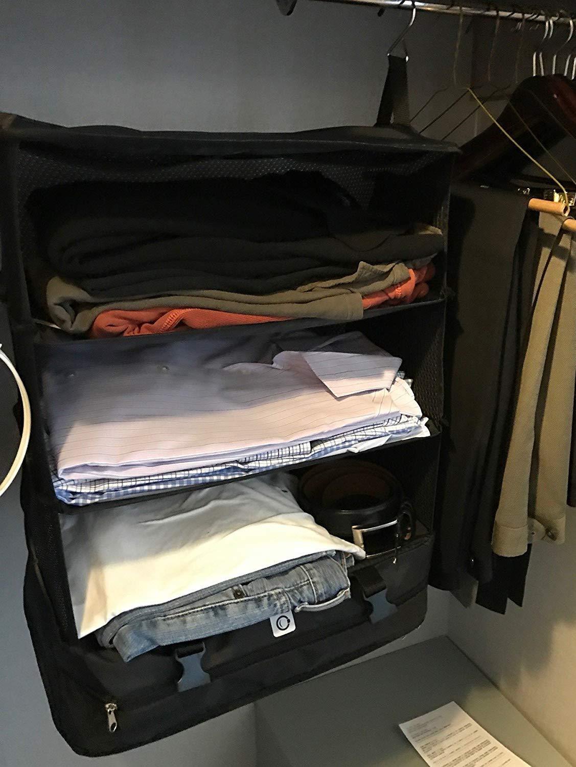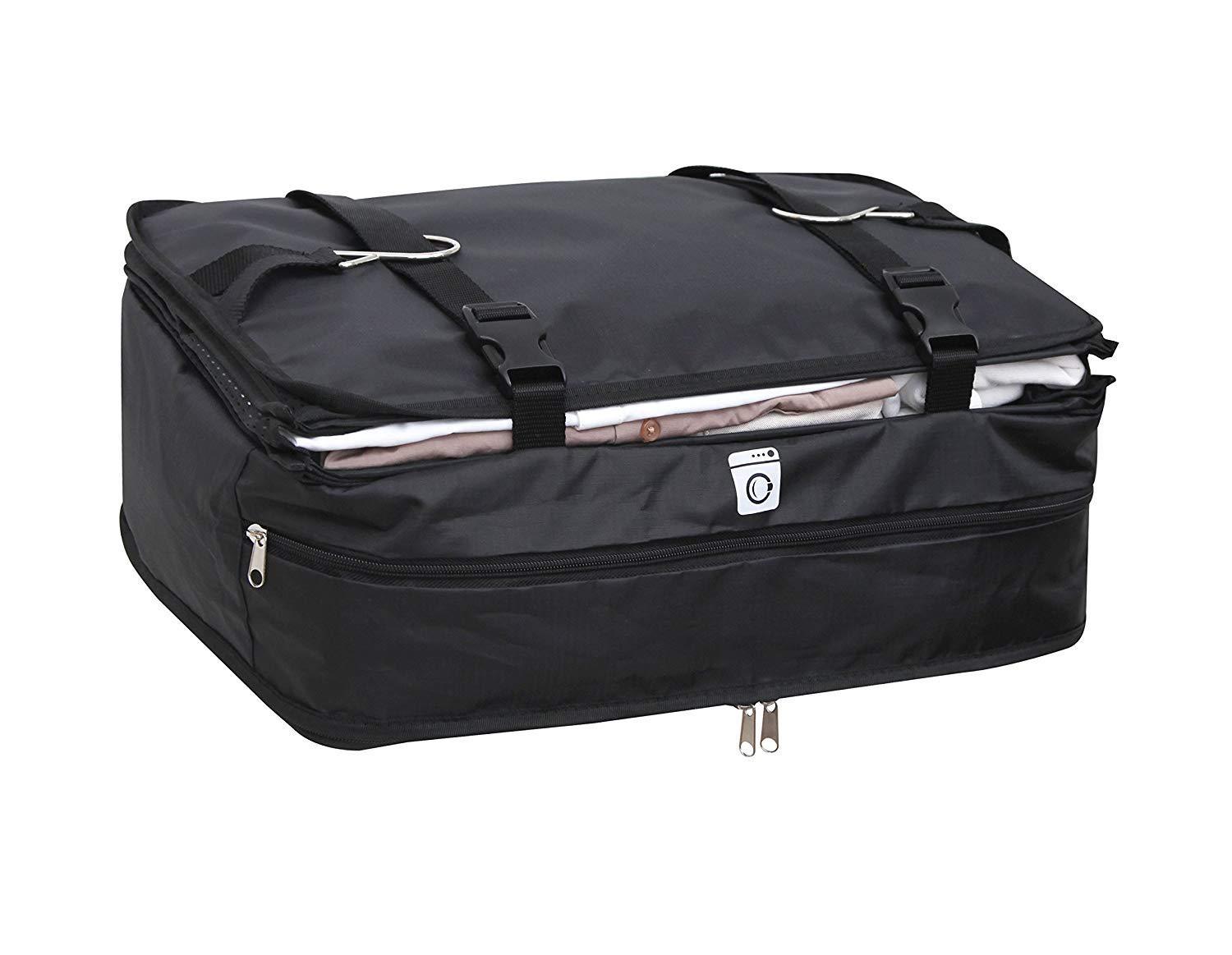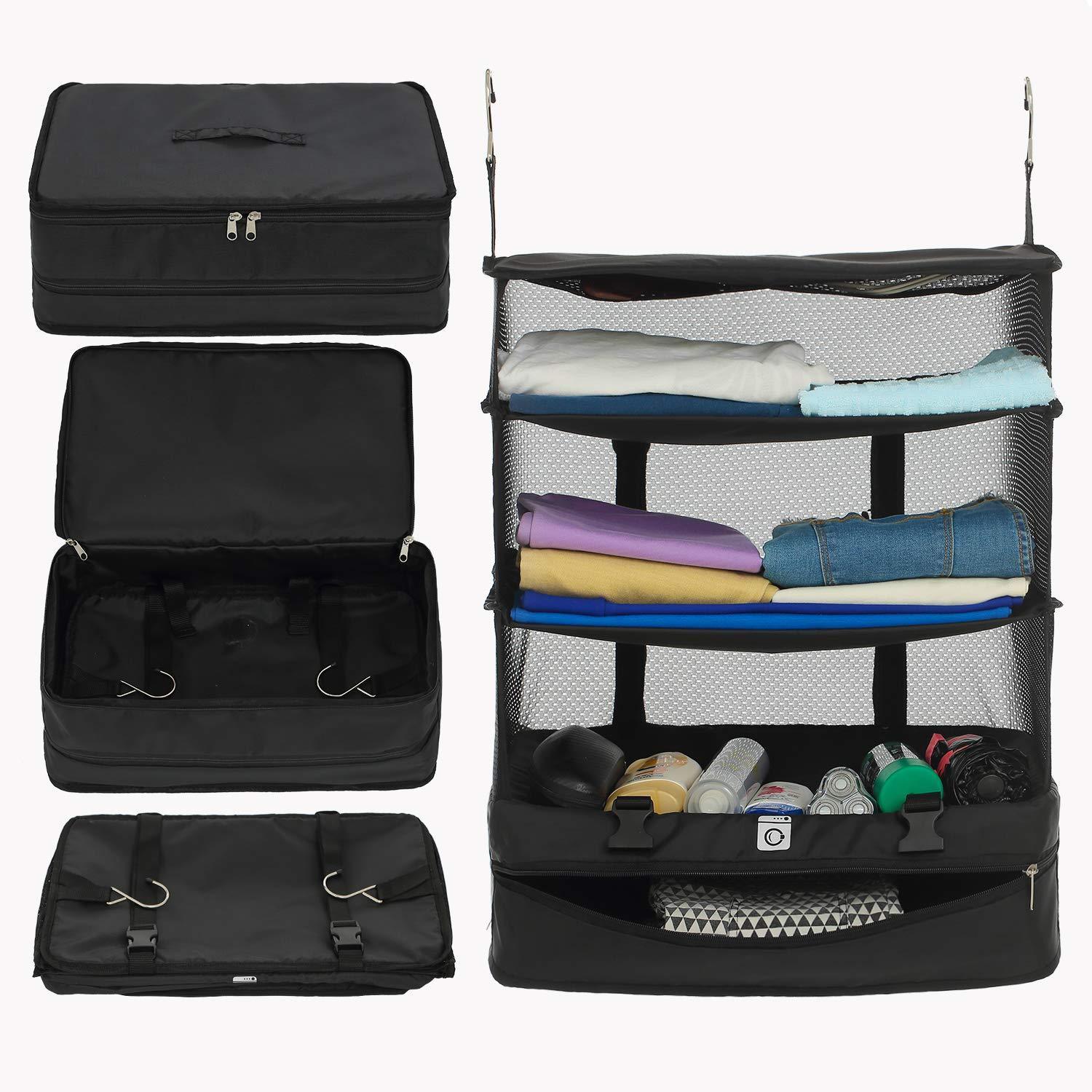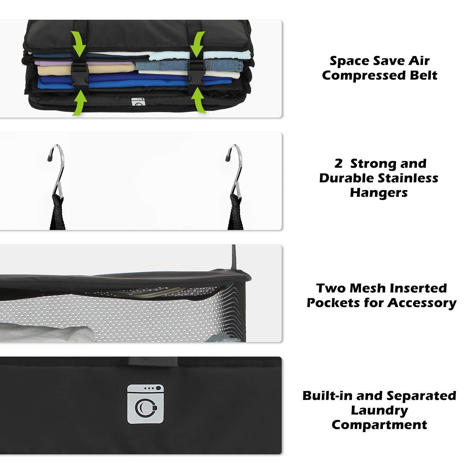 • استعمال میں آسان: اپنے بیگ کو پیک کرنے کے ل just ، صرف ہمارے توسیع پذیر نظام کو پھانسی دیں ، اپنے کپڑے لوڈ کریں ، گریں اور سسٹم کو لچائیں اور اپنے سوٹ کیس میں پیک کریں۔ چونکہ ہمارا سسٹم دروازے کے اوپر یا شاور کے پردے پر ایک الماری میں لٹکا ہوا ہے ، لہذا آپ کو پیک نہیں کرنا پڑے گا: بس اپنے سوٹ کیس سے اسٹو این کو ہٹائیں اور لٹکا دیں! ہمارا نظام ٹریول کیوب کے مقابلے میں استعمال کرنا آسان ہے!
