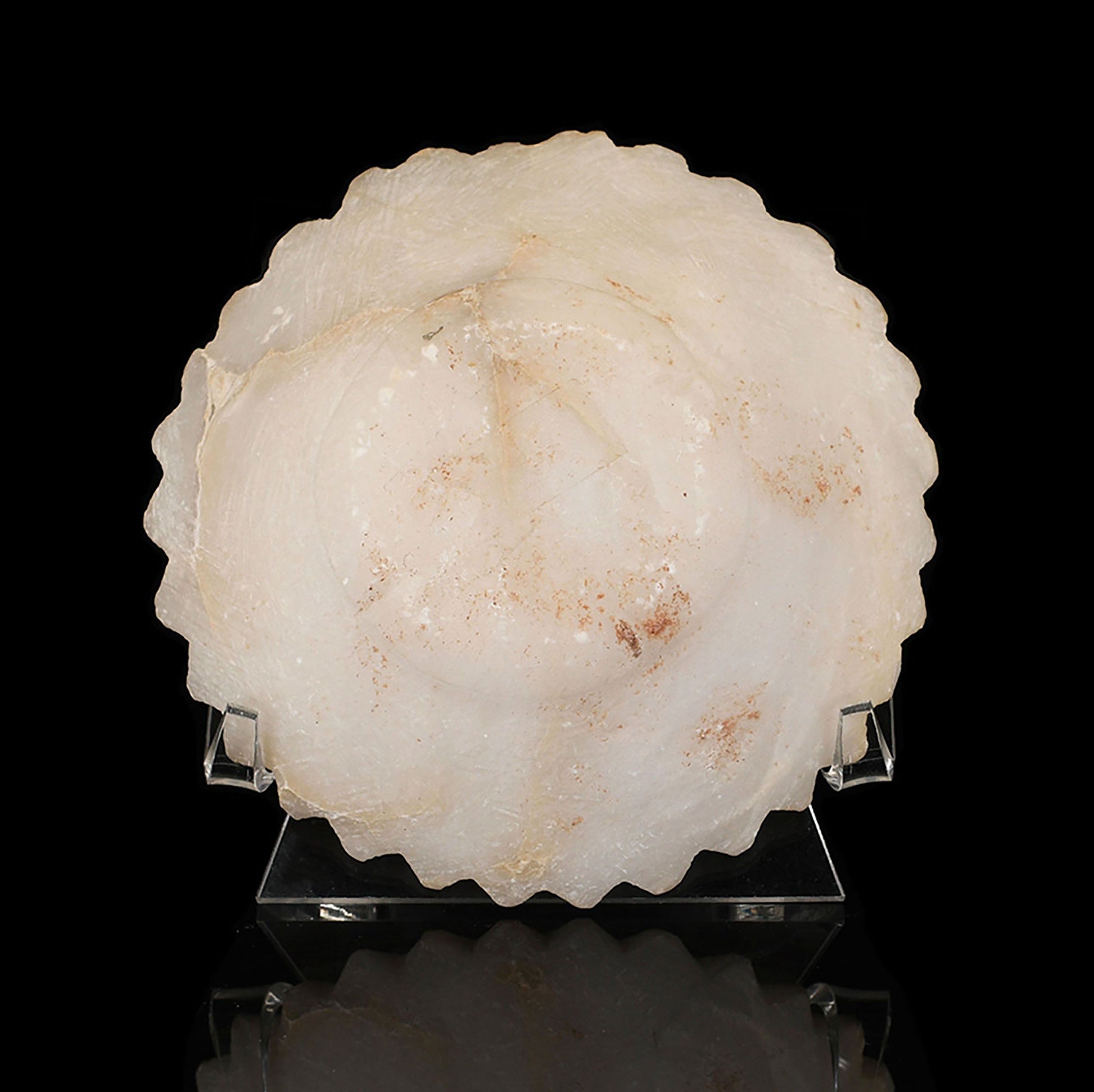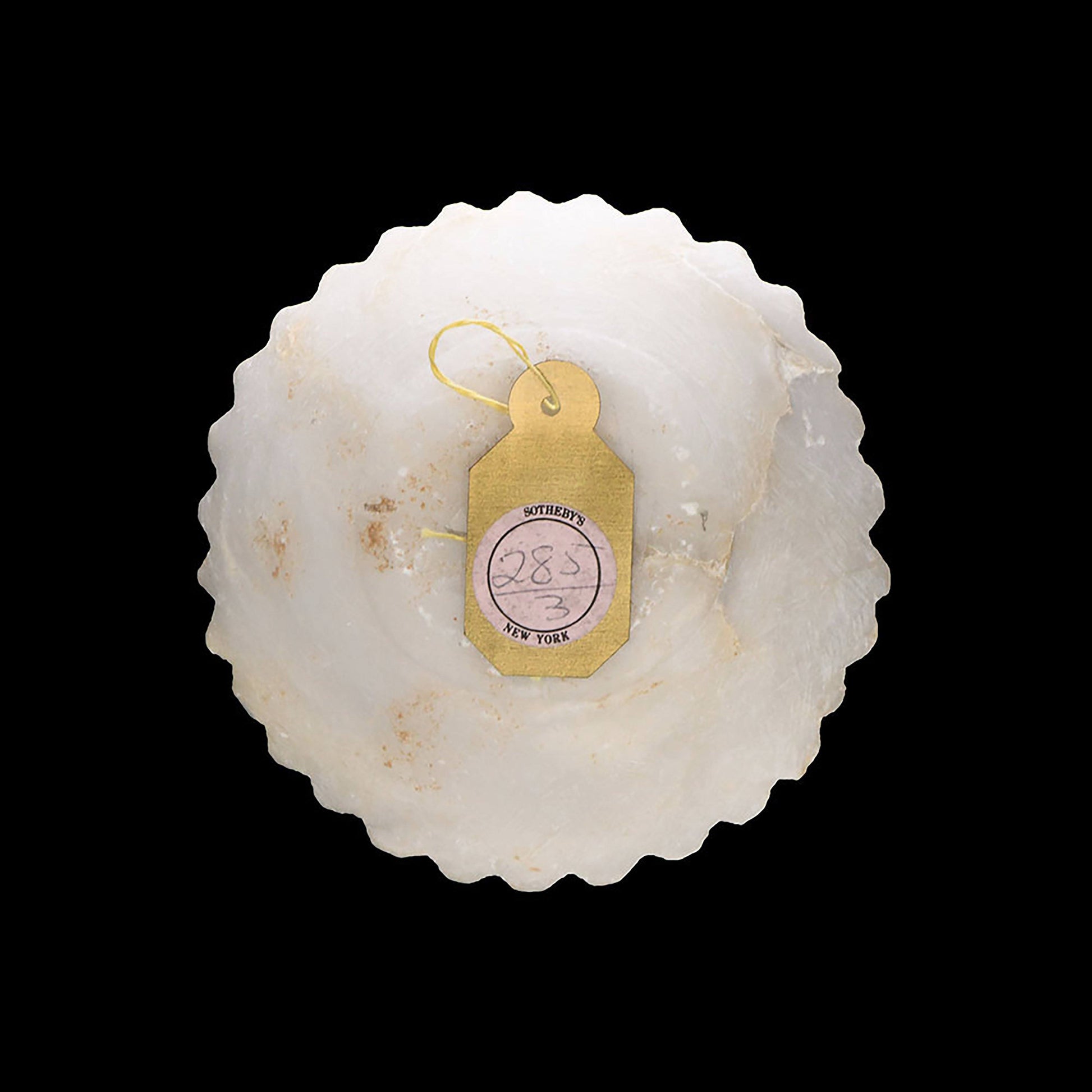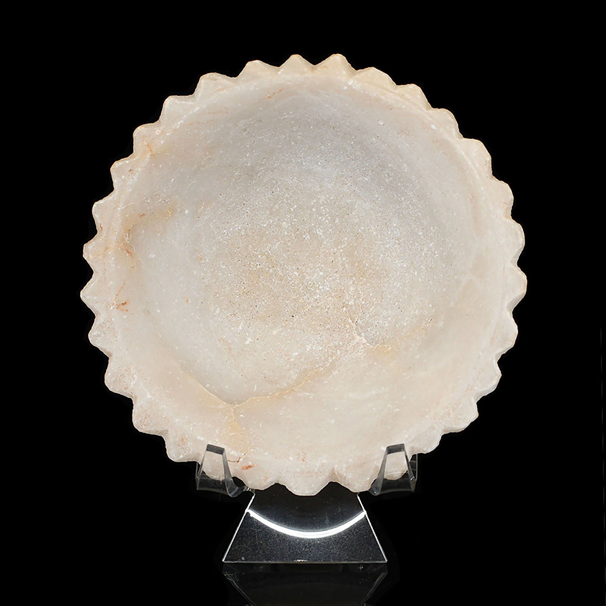 ایک شاندار اتلی الاباسٹر کٹوری جس میں ایک کندہ کردہ لائن کے ساتھ سجایا گیا ہے جس میں فریم چل رہا ہے ، اور ایک ڈسک پاؤں۔ شاید ایک ووٹ ویسل کے طور پر استعمال کیا جاتا ہے ، اس پیالے کو ایک عیش و آرام کی چیز سمجھا جاتا جو اعلی طبقے کے ذریعہ استعمال ہوتا ہے۔