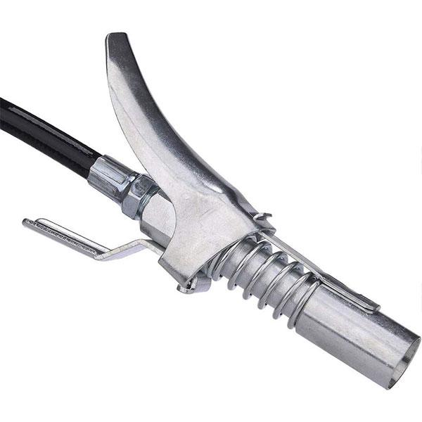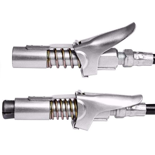 چکنائی کے جوڑے پر تالا لگا کر دونوں ہاتھوں کو آزاد کرتا ہے جبکہ چکنائی اور مایوسی کو ختم کرتا ہے۔ ڈبل لیور ہینڈل چکنائی کوپلر صرف جگہ پر لاک ہوجائے گا اور لب کے کام کے بعد فوری ، آسان رہائی فراہم کرتا ہے۔ جبڑے پر لاک کے ساتھ سخت اسٹیل بہار سے لدے چکنائی والے کوپلر کو ٹوٹ پھوٹ ، رساو اور 10،000 پی ایس آئی (690 بار) تک کا مقابلہ کرنے کے لئے ڈیزائن کیا گیا ہے۔