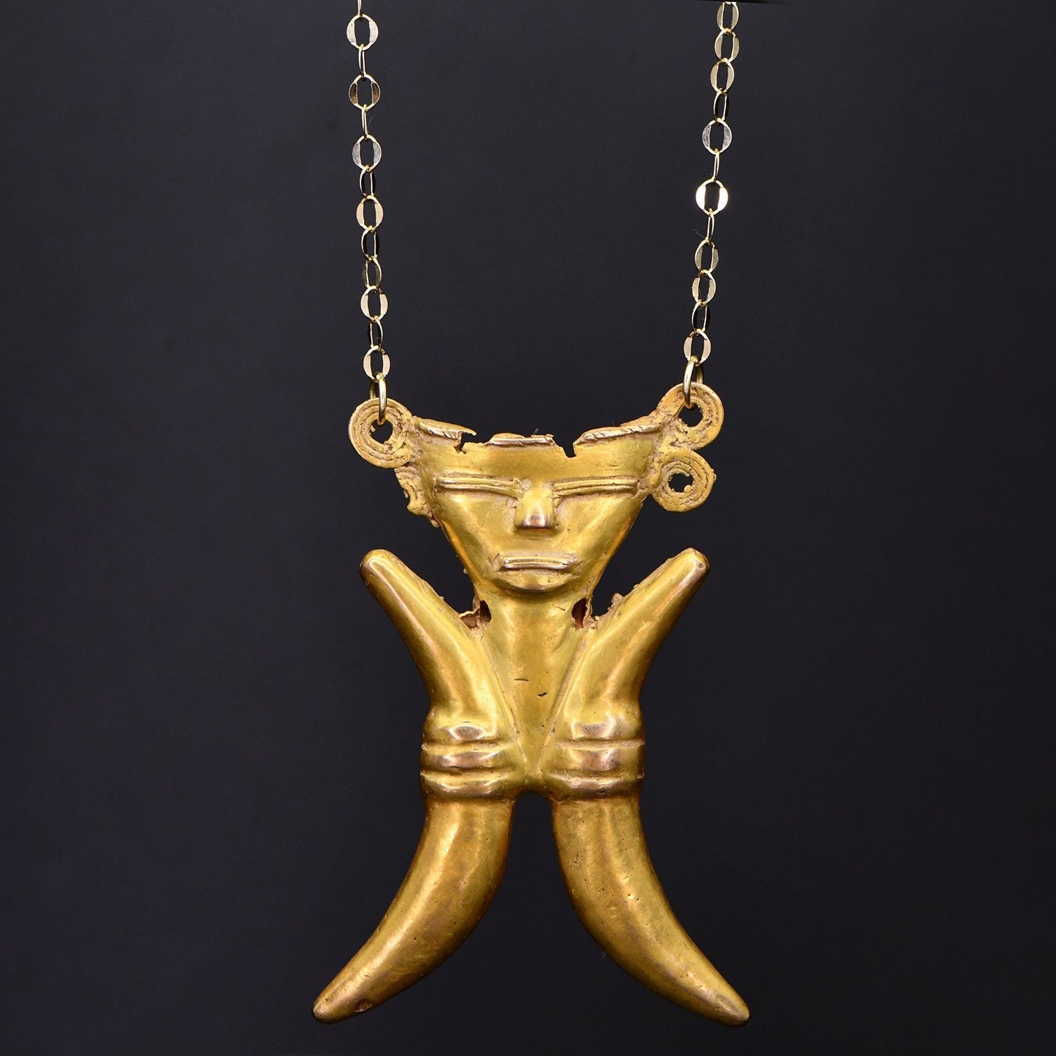 ایک انسانی سر کی شکل میں ایک حیرت انگیز کاسٹ فگولر سونے کا لاکٹ ، دونوں ہاتھ ہر ایک کریسنٹک پر عمل درآمد کرتے ہیں۔ 14 کلو سونے کی زنجیر پر لاکٹ کے طور پر سوار۔
