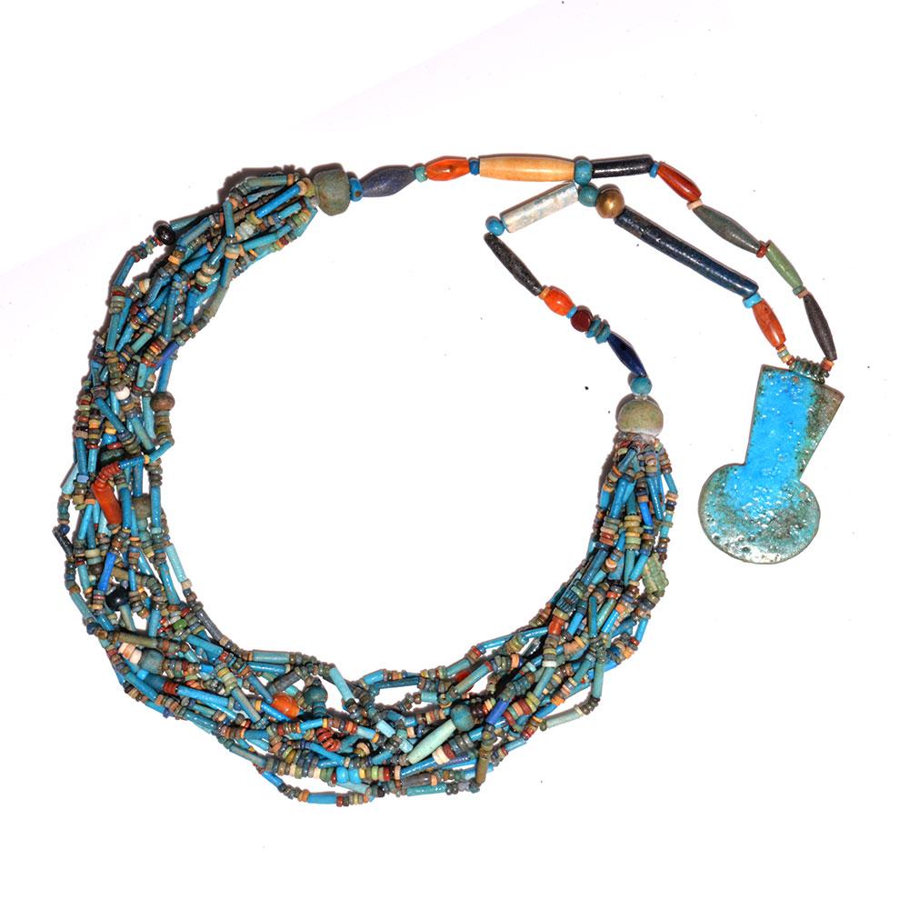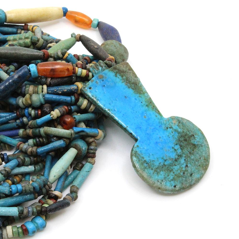 مینیٹ ، نیو کنگڈم ، خاندان 18 - 19 ، سی اے کے ساتھ ایک مصری فینس اور پتھر کے مالا کا ہار۔ 1550 - 1187 قبل مسیح