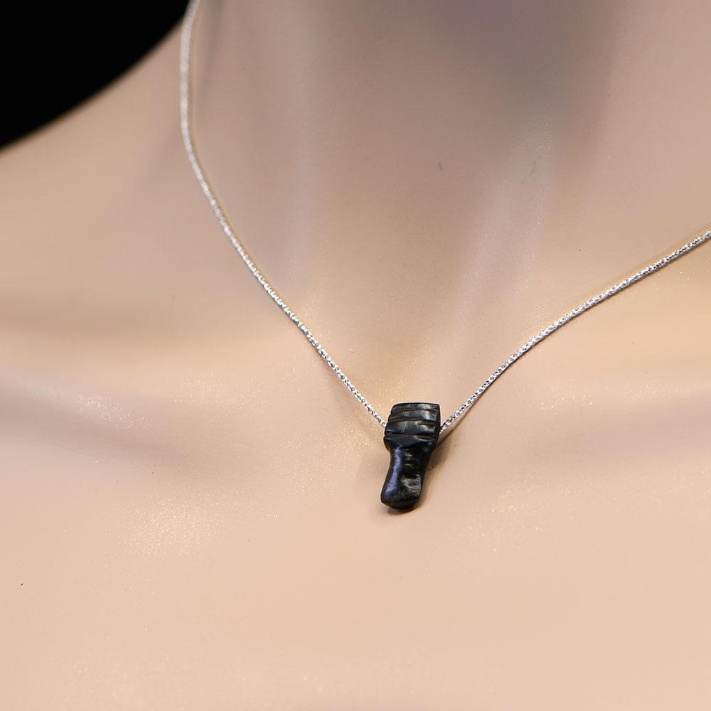 گہرے سبز رنگ کے سانپوں سے ہاتھ سے کھدی ہوئی ، اس ڈی جے ای ڈی ستون کے تعویذ میں ایک پتلا ٹاپرنگ فارم ہے جس میں لمبا چوڑا شافٹ اور دارالحکومت چار مختصر افقی سلاخوں کے ساتھ بھرا ہوا ہے۔ تعویذ کو اٹیچمنٹ کے لئے پیٹھ میں چھیدا جاتا ہے اور اسے داغدار مزاحم اسٹرلنگ سلور چین پر ہار کی طرح کھڑا کیا جاتا ہے۔