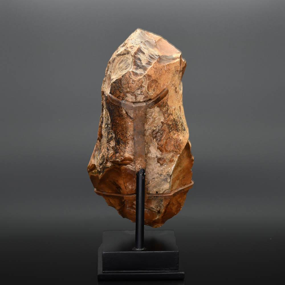 ایک بڑی اور کافی مثال ، ٹکراؤ سرخ رنگ کے بھورے چکمک کے ٹکڑے سے ایک ہاتھ کی کلہاڑی میں پھنس گیا ، جس میں تقریبا the پورے اوپری حصے میں اصل چکمک جلد کو برقرار رکھا جاتا ہے اور چکمک نوڈول سے غیر منقولہ رہتا ہے۔