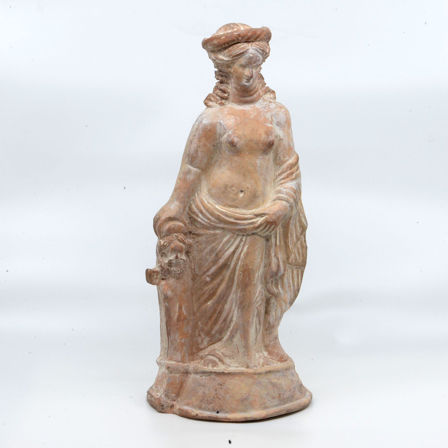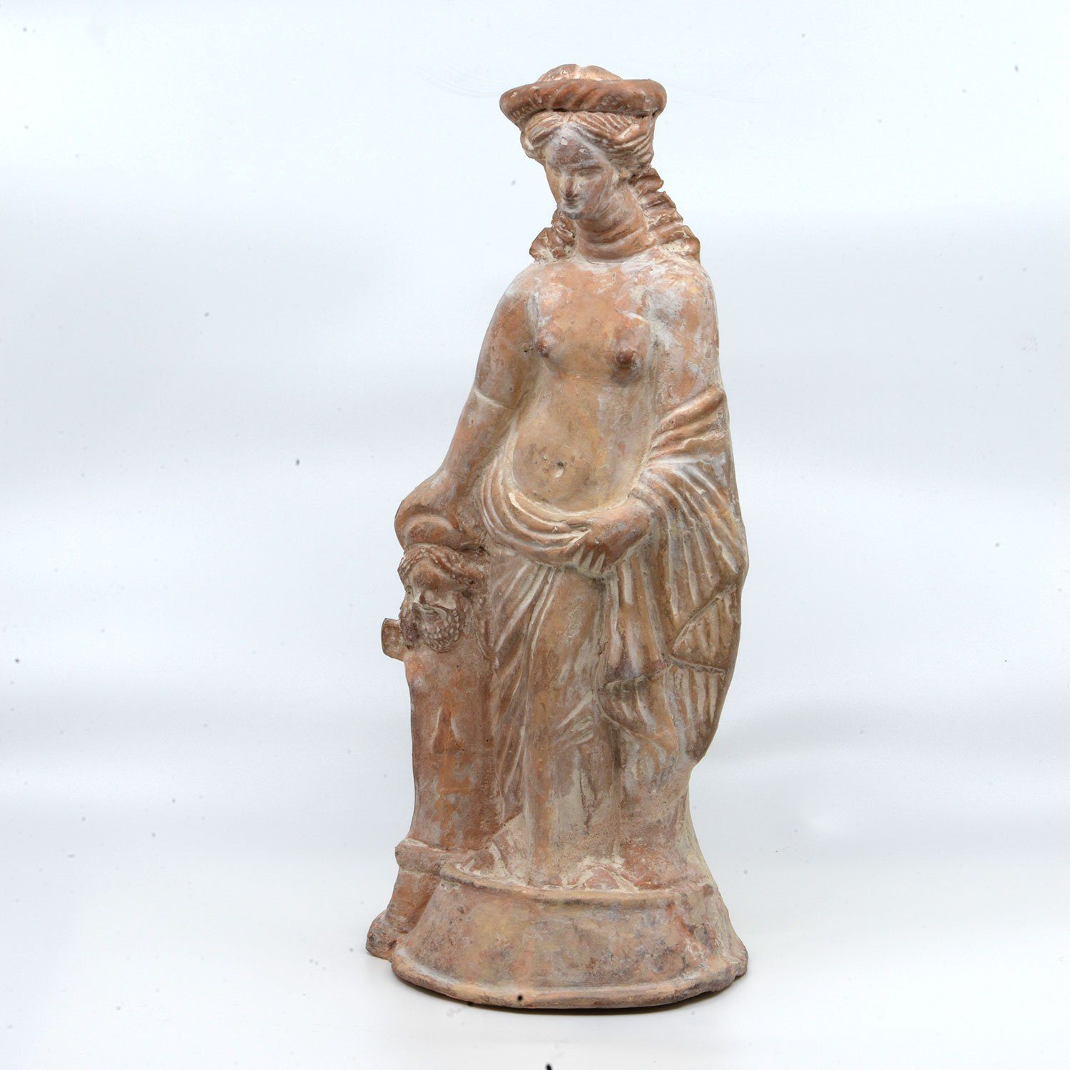 افروڈائٹ ایک لازمی اڈے پر کھڑا ہے ، اس کے کولہوں کے چاروں طرف ڈراپری کے ساتھ ، اس کے دائیں ٹانگ پر ہرم کے داڑھی والے سر پر اس کا دائیں آرام سے اس کا دائیں بائیں ، اس کے دائیں ٹانگ پر ایک ہرم کے داڑھی والے سر پر آرام کر رہا ہے ، اس کے مرکزی طور پر جدا ہوئے بالوں میں چادر چڑھائی ہوئی ہے جس کی گردن میں گرتی ہے۔ ؛ یونانی میں ریورس پر دستخط کیے۔  شاید میرینا سے افروڈائٹ اور ایک ہرم کے ساتھ میرینہ سے دوسرے ٹیراکوٹاس کے لئے ، دیکھیں: