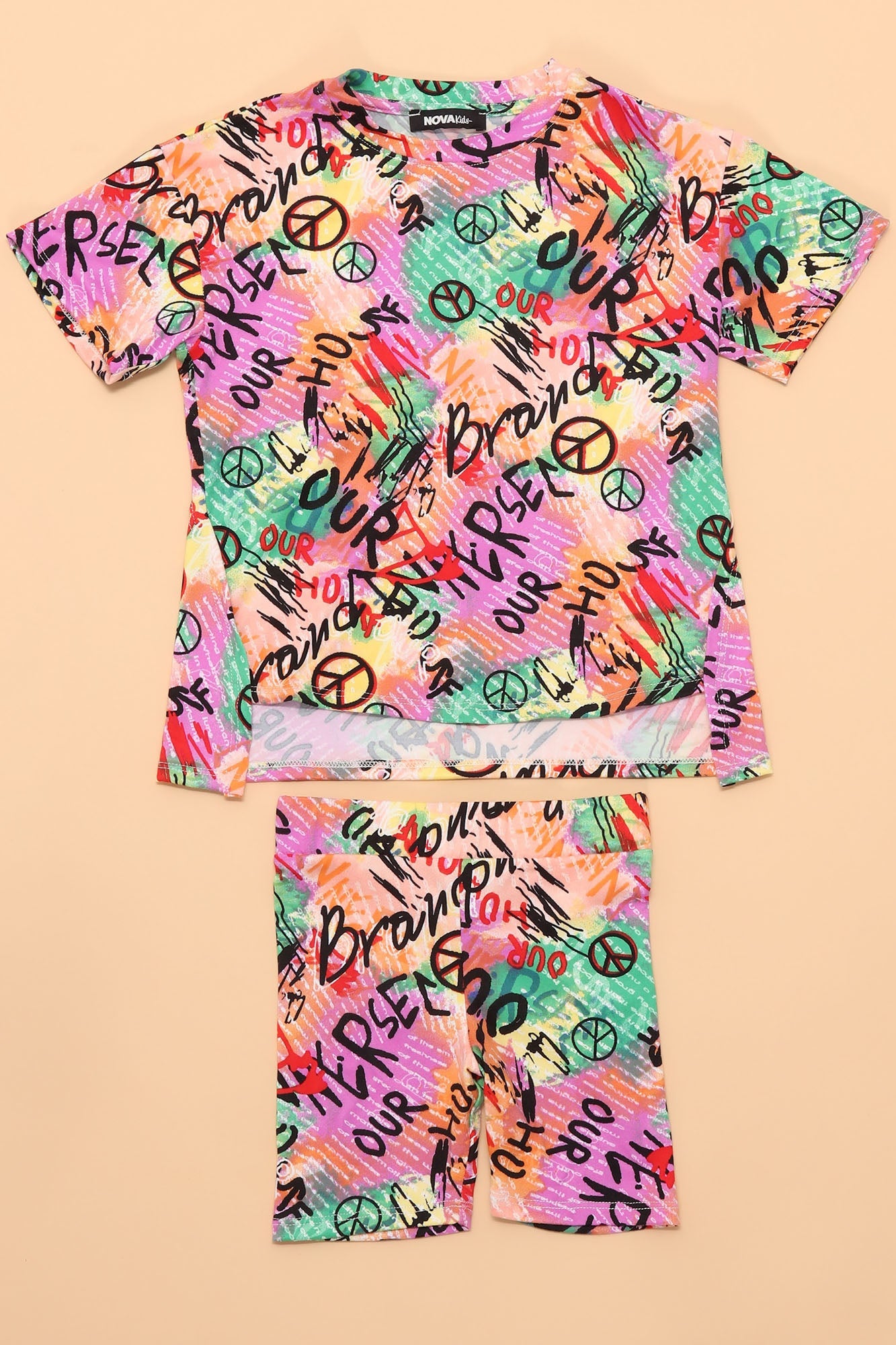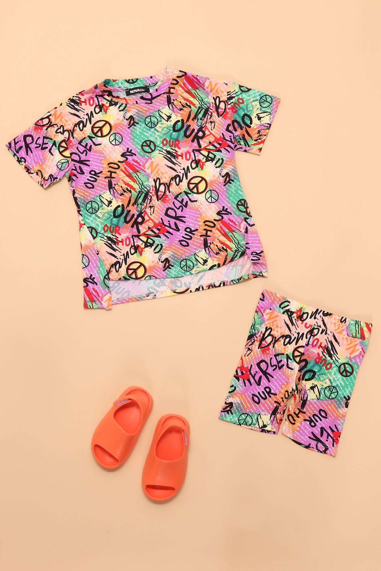منی پیس کائنات بائیکر شارٹ سیٹ - ارغوانی/طومار