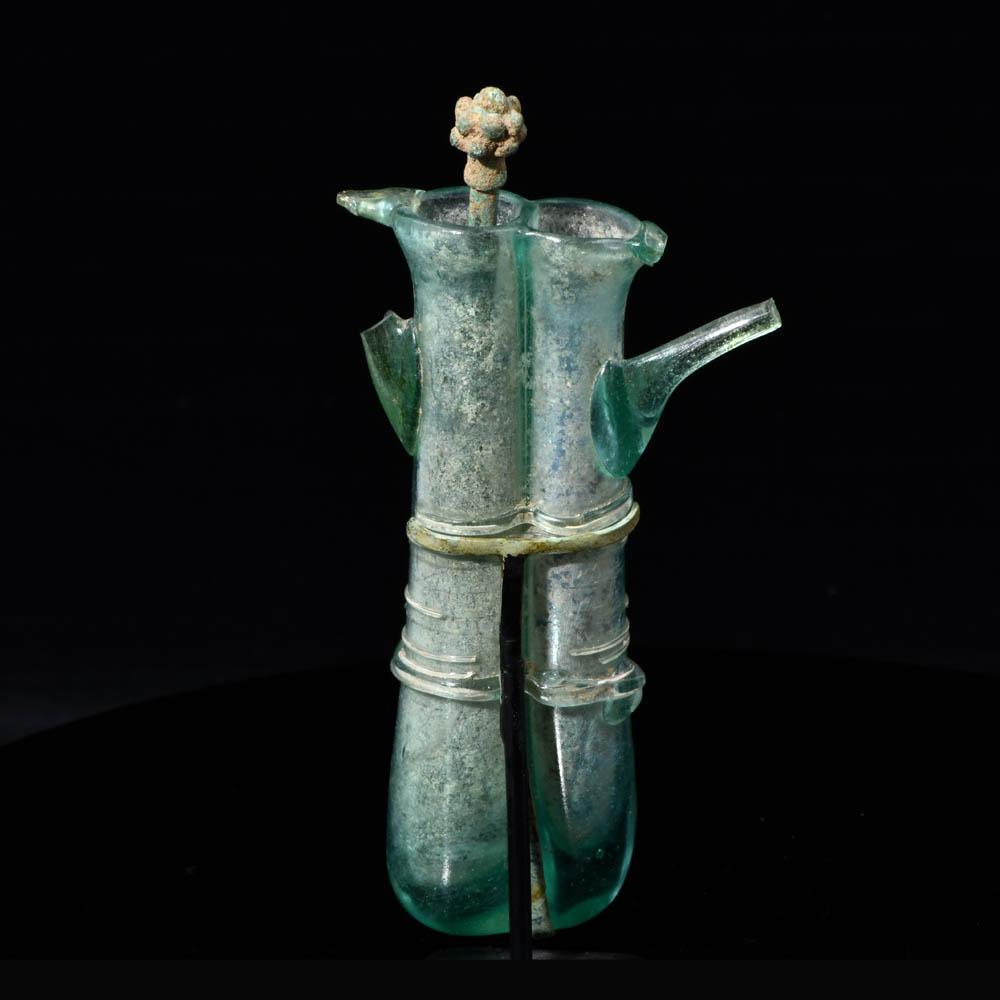 ایک رومن گلاس ڈبل بالسامیریم جس میں اطلاق شدہ ہینڈلز ہیں ، سی اے۔ چوتھی صدی عیسوی