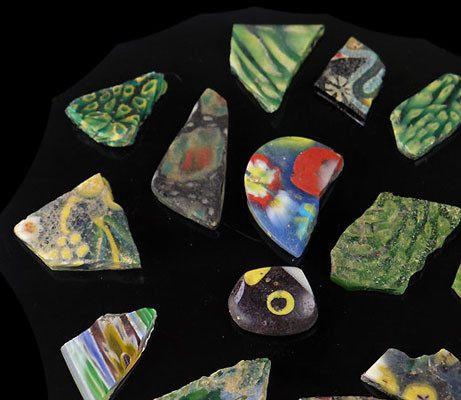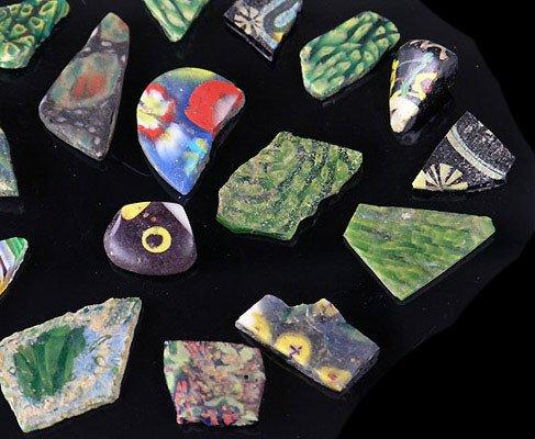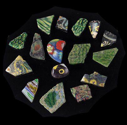 رومانو-مصری موزیک شیشے کے برتن اور ٹائل کے ٹکڑوں کا ایک گروپ ، سی اے پہلی صدی قبل مسیح/سی ای