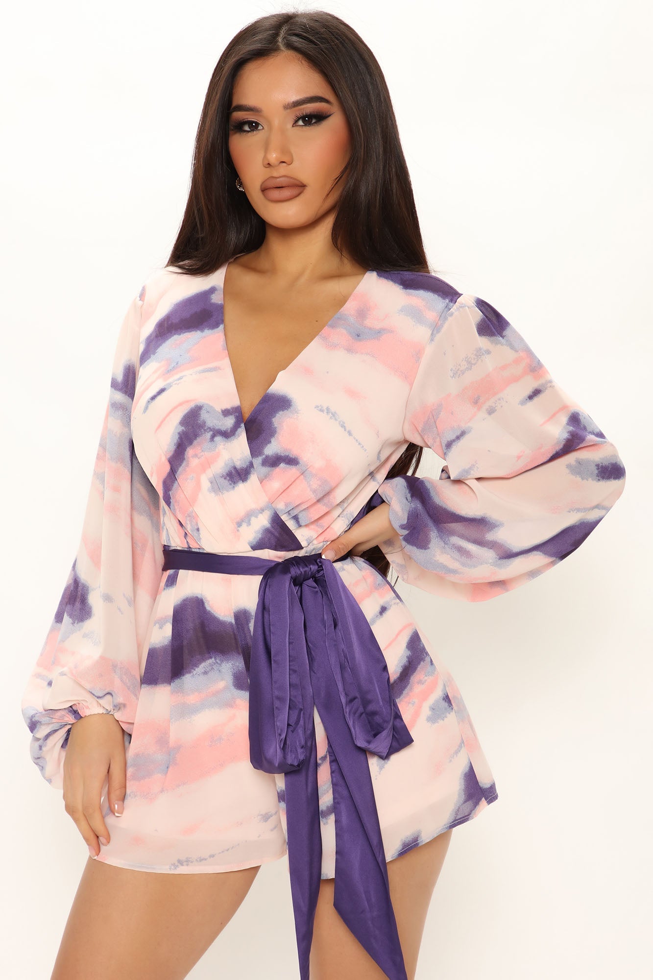 اسکائیلر ملٹی کلر لمبی بازو رومپر - آڑو/کومبو